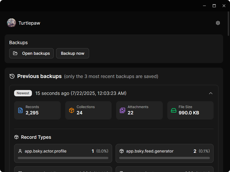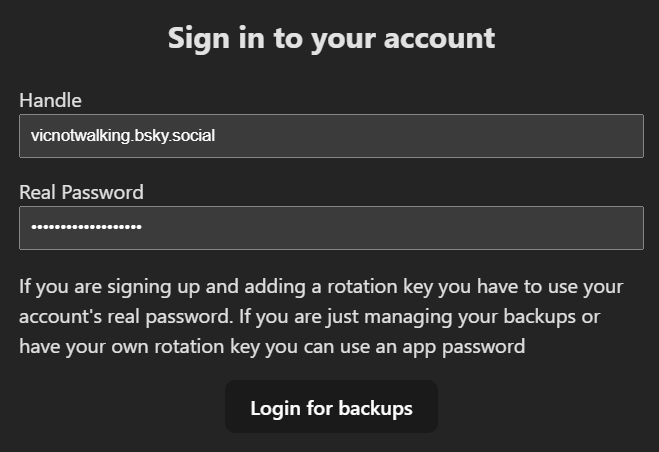 Para apenas gerenciar backups, pode ser utilizado uma senha de aplicativo (que você pode gerar no Bluesky).