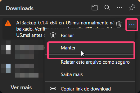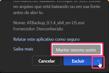 Alguns navegadores podem tentar impedir o download, busque a opção de "Manter mesmo assim".