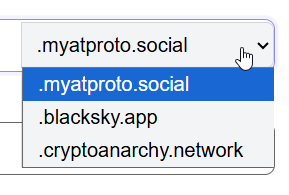 Caso o PDS escolhido possua mais de uma opção para o final do username, faça a seleção na direita (abaixo exemplo do PDS do Blacksky).