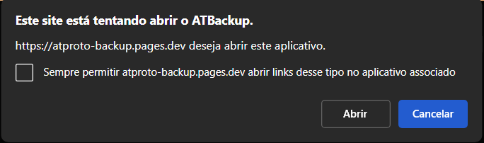 O navegador provavelmente vai exibir um alerta pop-up informando que o site deseja abrir o programa ATBackup, clique em "Abrir".