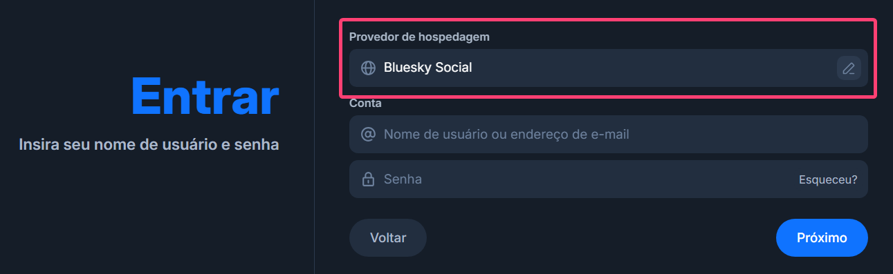 Outros aplicativos alternativos do Bluesky ou que utilizam o mesmo protocolo devem ter um fluxo de login similar, ou até mais simplificado (alguns só precisam que você informe o seu nome de usuário e já detectam automaticamente qual o seu provedor de PDS).