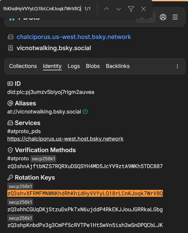 Se quiser verificar que a nova chave está realmente registrada na sua conta, você pode utilizar o PDSls. Informe o seu username no campo de busca e aperte enter.