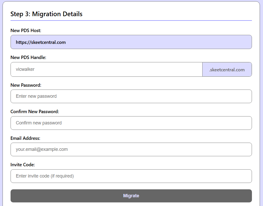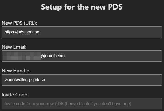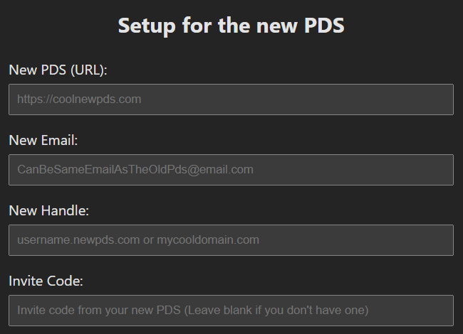 New PDS (URL): a URL do PDS de destino escolhido (precisa ser sem barra no final).