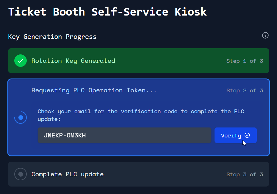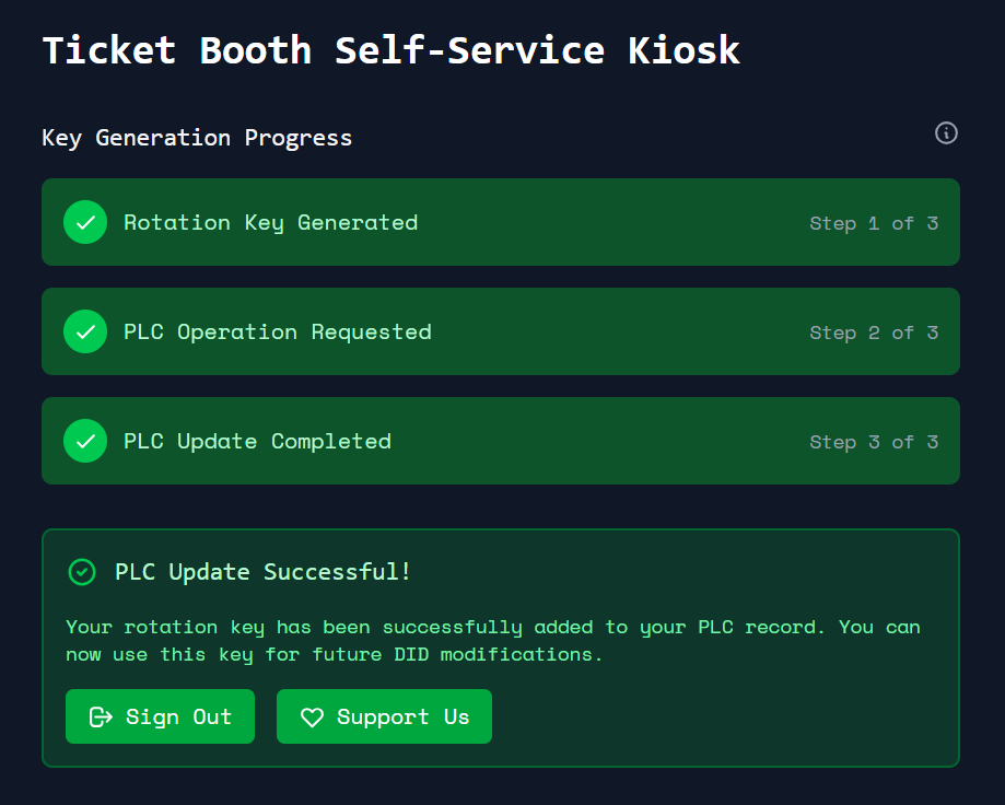 Se sua tela tem a mensagem de "PLC Update Successful!", você concluiu a geração e registro da sua nova chave de rotação com sucesso!
