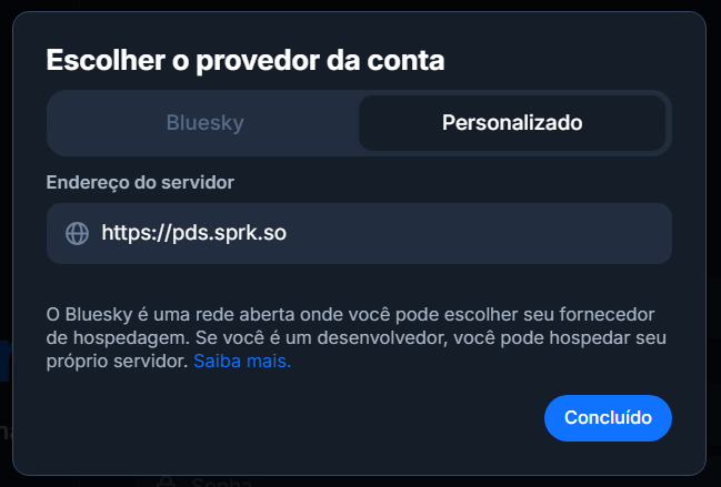 Atualmente minha conta fica no PDS Porcini do Bluesky PBC