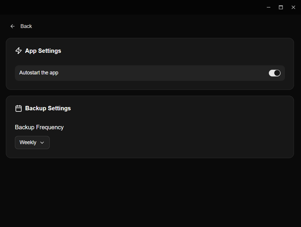Agora com o aplicativo logado em sua conta, você pode configurar na engrenagem do canto direito se você deseja que o programa inicie sempre com o sistema ou não, e a frequência que os backups serão feitos (diariamente ou semanalmente).