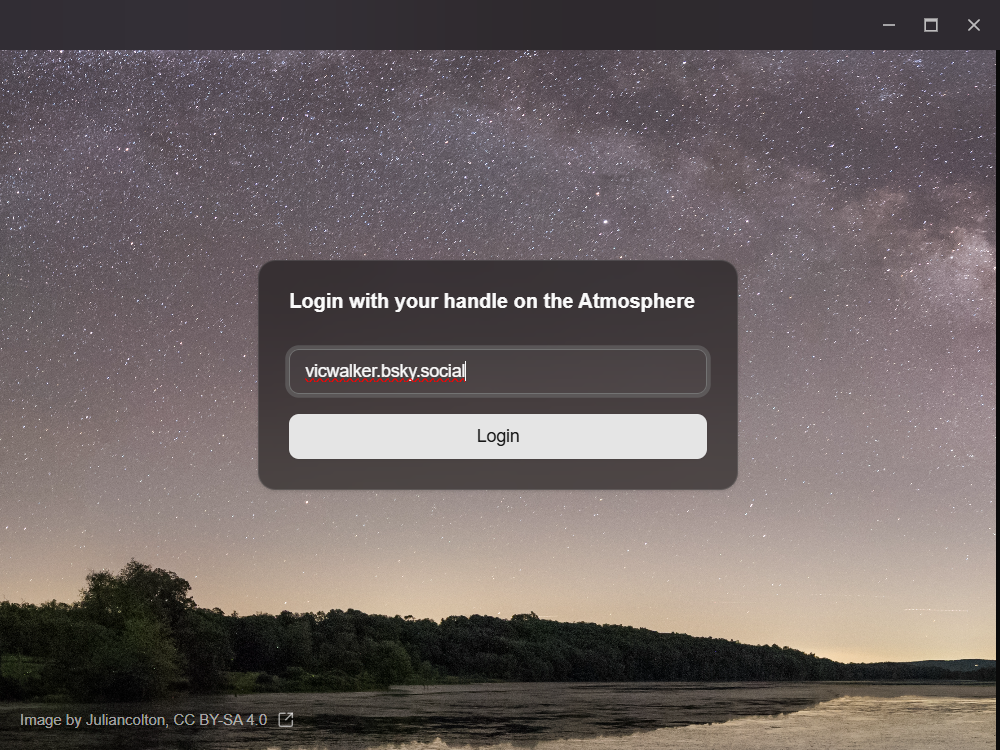 Abra o AT Backup recém instalado e faça login na sua conta do Bluesky: